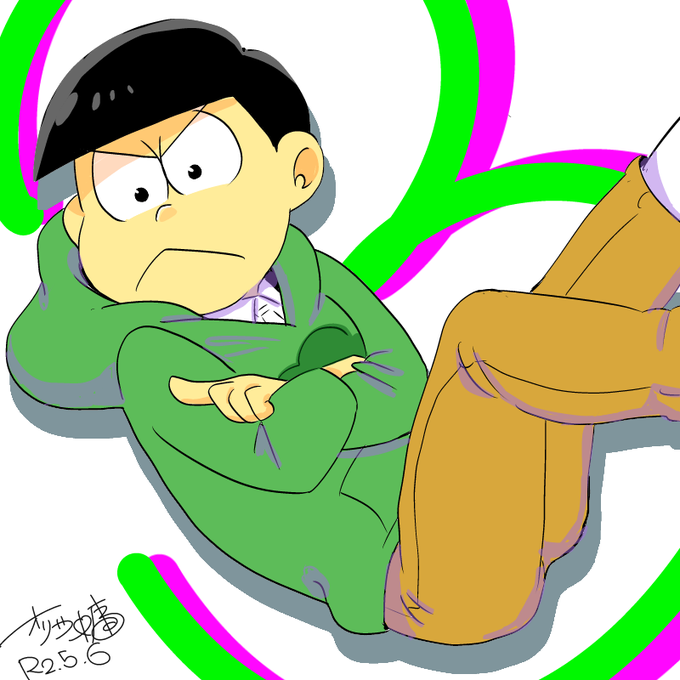 #今まで描いた松の誕生日絵を見せる