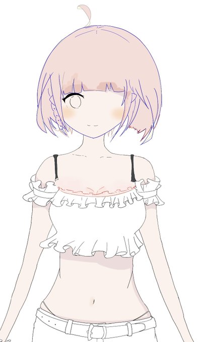 髪の長さを弄ってちょっと整えた…! (分かりにくいけど… ドリルは止めて三つ編みにした。 谷間を描きたいから、上のフリフリを破壊しようか悩んでいる。