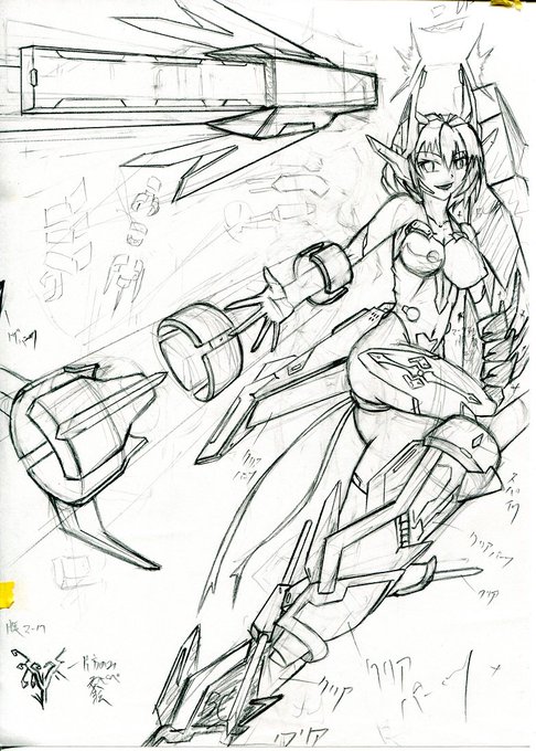 #このタグを見た人はラフ画とその完成絵を見せる 最近のだと、この自分の好み全部乗せメカ少女(水色髪)とかで