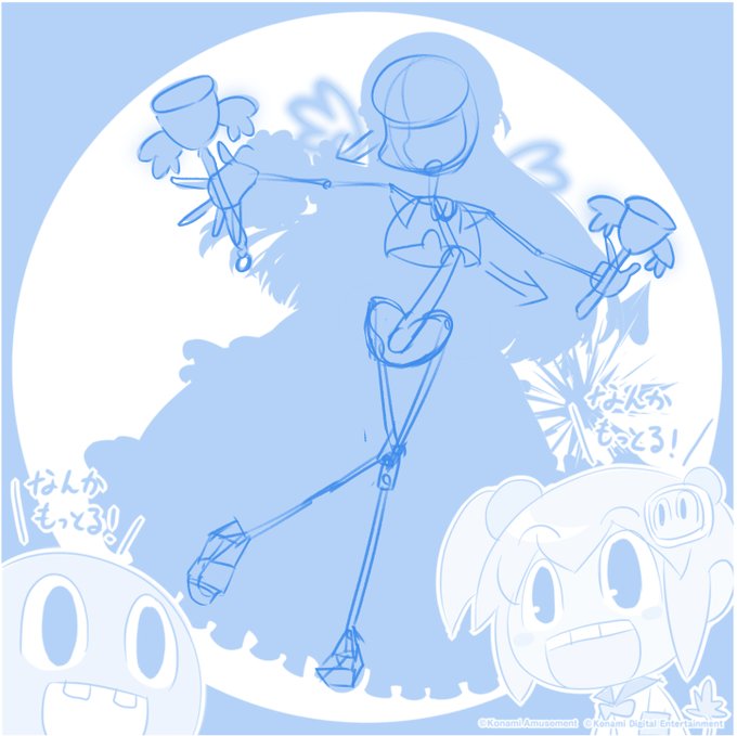 とりあえずシルエットから骨格を何となく予想して、シルエットなぞってモモパイプルからデザインを色々拝借してアタリを付けてみた!!