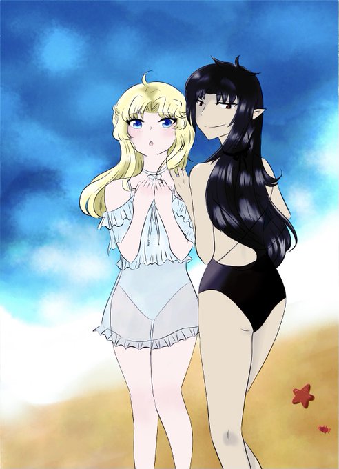 タグ企画 #自創作女子イラストフェス01 に参加します。 一次創作BL小説シリーズ「天使と悪魔」より、女性の姿をとった天使と悪魔のふたりです🥰