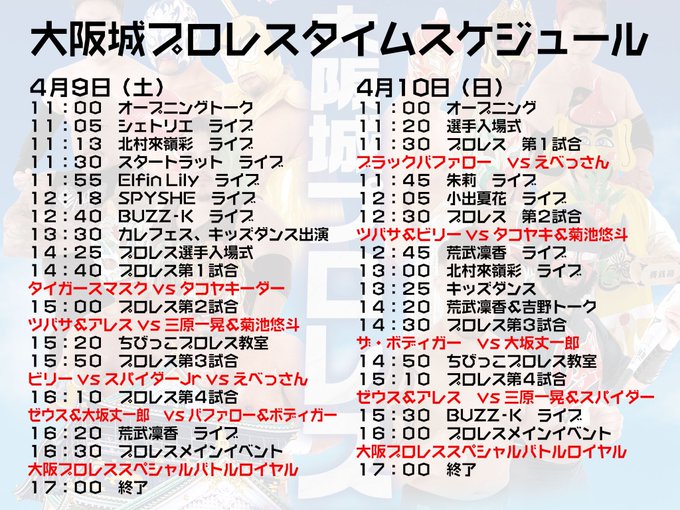 【拡散希望!】大阪城プロレス対戦カード&スケジュール決定! 皆様是非ともご期待ください! #大阪プロレス #大阪城公園