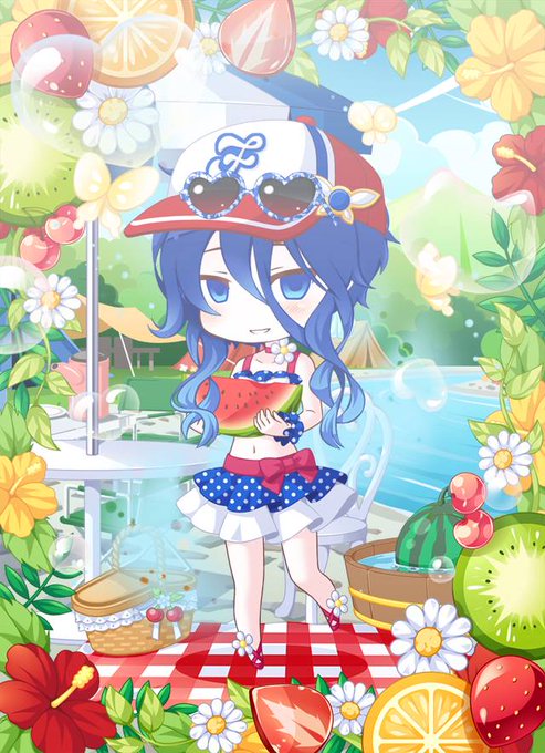 フレさんからいただいた夏らしさ満点の素敵マジック〜!海のコーデ、顔装飾が最高だ…!笑 こういう装飾で表情の幅広げてる方尊敬します…