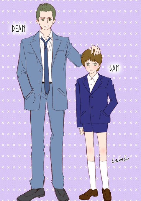 ディーンとサム 日本の小学校と高校の制服 #SPN版深夜のお絵かき真剣60分一本勝負