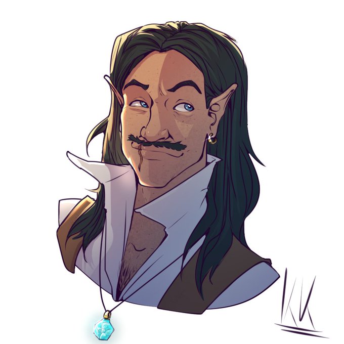 I have mentioned the fancy bard man and his pirate husband from my Saltmarsh campaign and I finally have matching art of them by the wonderful @CaryAth and I just. I love them so much y'all