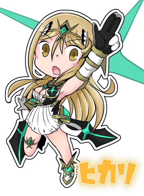 ステッカー風その2。ヒカリちゃんはセイレーンを呼んでるポーズで、ニアはコメットパンチしてるポーズです。 #ゼノブレイド2