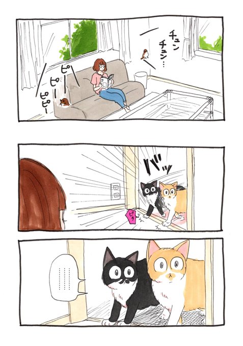 2ページ漫画。 【すずめの巣立ちの時期】