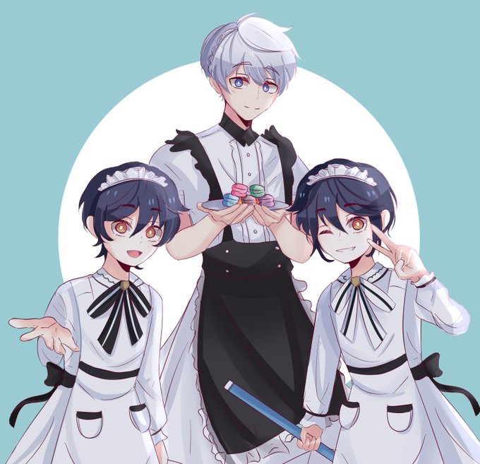 happy holidays, @emoguro ! i'm your secret santa ✨ here's arthur and the twins in maid outfits, hope you like it!
