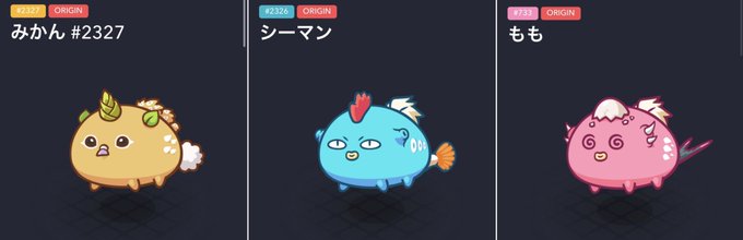 本日はむーさん@@mu_coin のジホからもらった(!?)オリジンアクシーたち