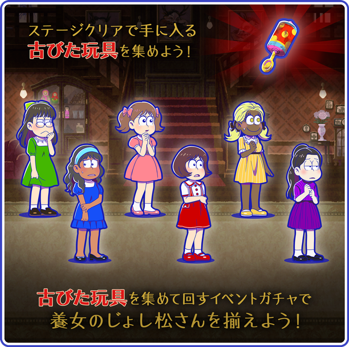 ステージクリアで手に入るポイントを集めてイベントキャラの6つ子を揃えよう!