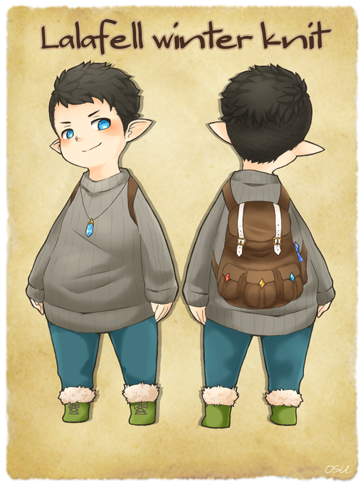 次のオシャレ装備見てて、良いなぁって思ったのでニット繋がりで。ちょっとロングなニットが欲しい。#FF14