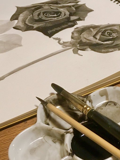 好きなだけ絵が描ける幸せ💞 初めて墨で植物描いた。 #墨絵 #薔薇 #illustration #inkpainting #rose