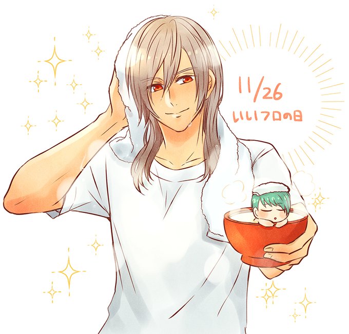 いい風呂の日だったので、風呂上がりのたかふみとお椀のお風呂に入っているリョウちんを描きました♨思うままに描いたちあふゆ(?)らくがき…シチュエーションが謎