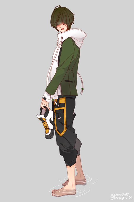 くわなごの首回りへの理解を深めようと思い描き始めたのに、パーカーの下に何も着てない事に今更気付いてニコニコしながら描いた昨日の絵