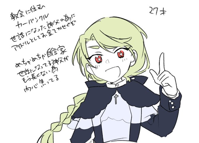 カーバンクルの聖職者アイドル(神父のお手伝いだから聖職者と言いづらい)服が驚くほどくそダサいのでそこは後日描き直す…もう寝なきゃいけないからってこれはダサい…