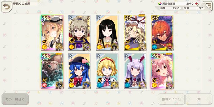 10連でSSR3枚抜き(ノ≧▽≦)ノ✨