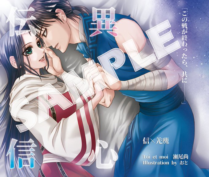 【信瘣】尚さん(@sena_dom)のご本『異心伝信』に表紙&挿絵2枚を描かせて頂きました!スパコミの新刊、全年齢向けの信瘣本です。550話をベースにしたお話となっております。原作沿いの信瘣に萌え転げたい方は是非😊