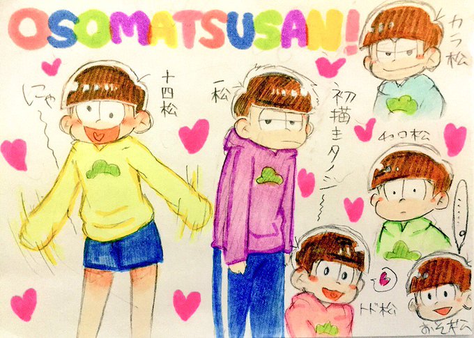 十四松めちゃくちゃかわいいハマった〜〜!!!数字松もよい〜〜!!◎ 描き慣れてないから描くたび違うナァ 3枚目の数字松は何をしてるのか。 #おそ松さん