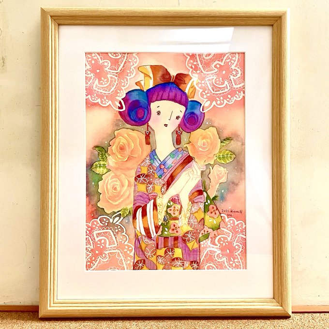 タグお借りします🏷レトロな着物乙女とロリィタファッションをまとう文化人形の文化ちゃんなどを透明水彩とアクリル、顔彩などで描いています🖌よろしくお願いします🌷