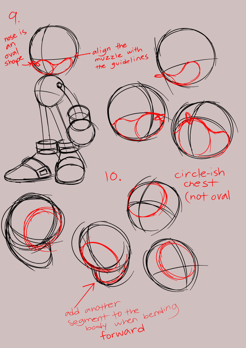 Muzzle time! I draw the muzzle along the guidelines of the head, as for the chest, I give it a more circle-ish shape sort of like Classic Sonic's circle chest rather than Modern's oval chest. 4/?