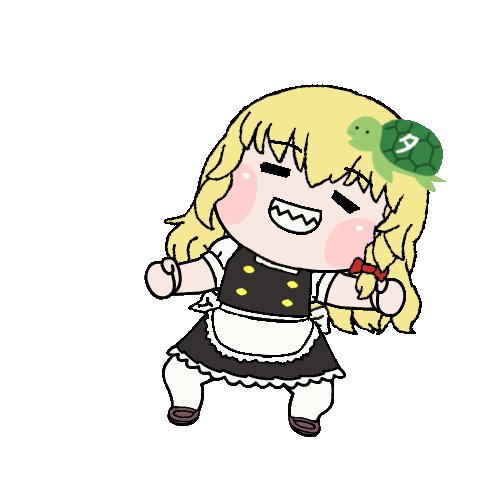 先のツイートでのうまるダンスgifで時間がかかったのは魔理沙の髪型。参考資料をググっても人それぞれの書き方で決まった形がない!