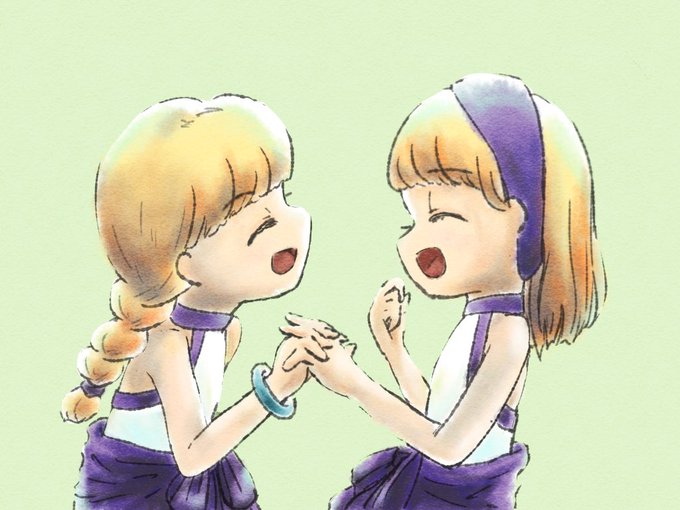 ラムダ姉妹。ボイスドラマ愛のこもれび本当によかった…ヘアバンドとブレスレット〜!となってどうしても描きたかった