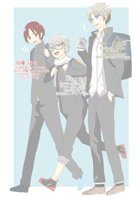 これは過去に描いた高校生時代 名前がやばいのは麺類になぞらえてやった為(その後麺次郎くんの苗字は乱橋になります。)