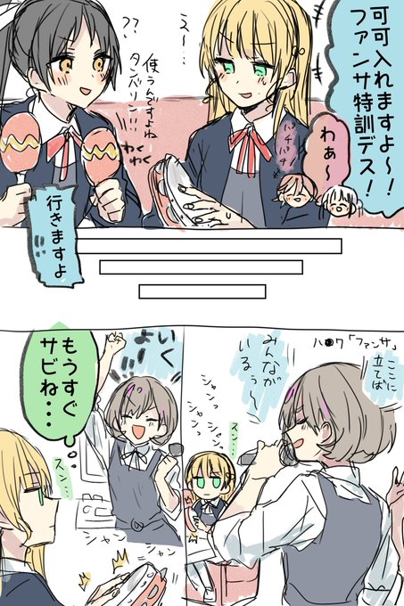 お題)ファンサの「私を見てもっと」でちょっと可可の方を見てしまう平安名すみれ 視線を受け取る可可,タンバリンを振る手が止まるすみクゥ #odaibako_ouga_0505 https://t.co/KMrkM6Fmt3