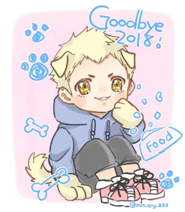 #ペルソナ版深夜の真剣お絵描き60分一本勝負 お題 坂本竜司 戌年が終わるのでリュージ犬で描き納め(∪•ﻌ•∪)