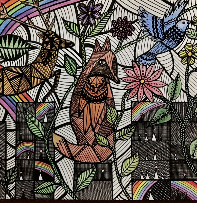 #wednesdaywonder An artwork shared with us by artist Rebecca Brown - people under lockdown in their little boxes,the newfound freedom of nature plus rainbows representing thanks to NHS and key workers. What are you creating during lockdown? We'd love to see... #shareartonline