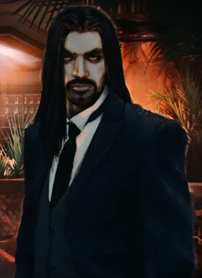 A character I've been playing for over a year until his recent True Death: Vincent Lenz, an evil, lascivious Toreador with a tragic past and a similarly tragic personality.