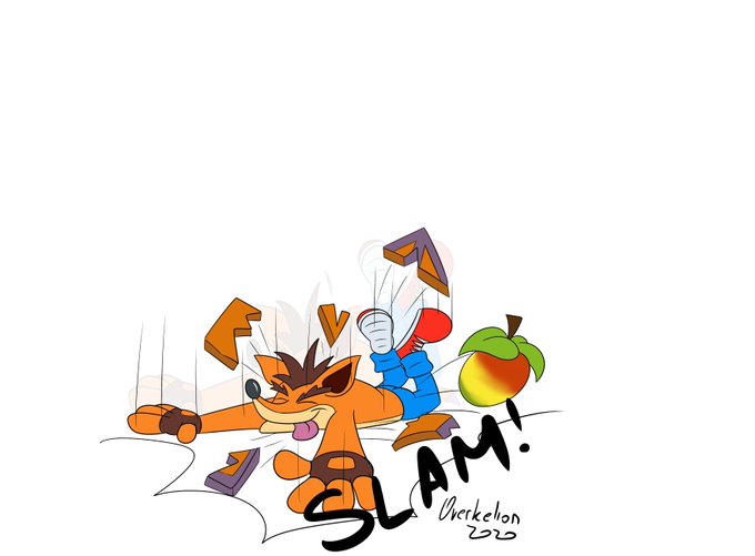 It's hard to perform a belly flop without getting hurt, but don't worry Crunch, with some practice, you will be crushing stuff (and other marsupials) in no time :D
