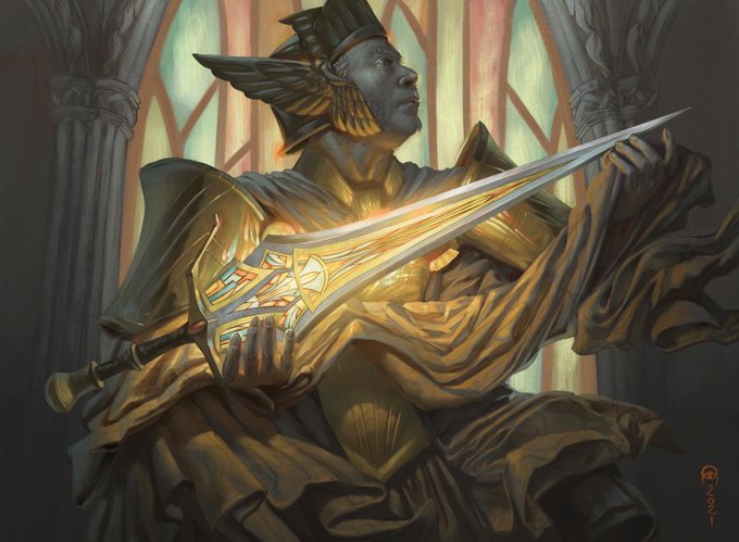 Hero’s Heirloom. Digital painting for #MagicTheGathering set Dominaria United. AD was @zack_stella. We ideated this as a bust of King Torsten. @AriZirulnik posed for the piece. This was inspired by the work of Bernini. #classicalart #WOTCstaff