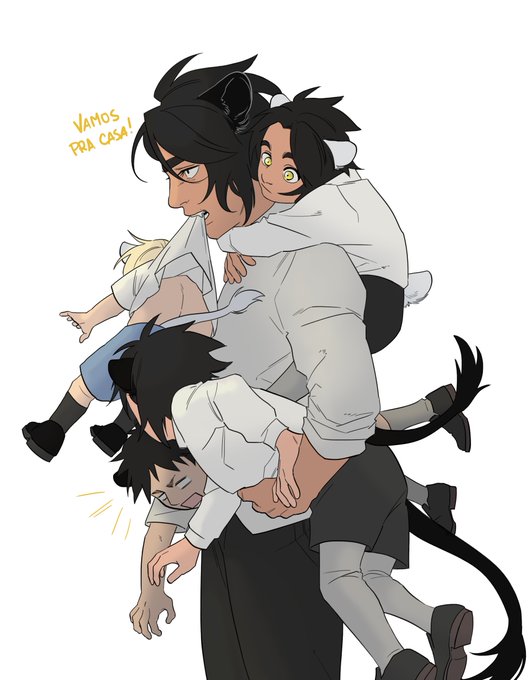 Ryuga (híbrida) carregando seus menino. Amo tanto essa ideia que desenhei duas vezes K