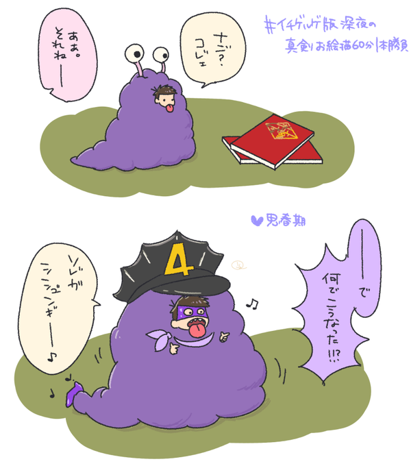 今日はお題間違えなかったぞー笑 (@1geruge_matsu) #イチゲルゲ版深夜の真剣お絵描き60分一本勝負 トってぃ「って寝落ちしちゃってるじゃん!!SNS上げようと思ったのに〜!」