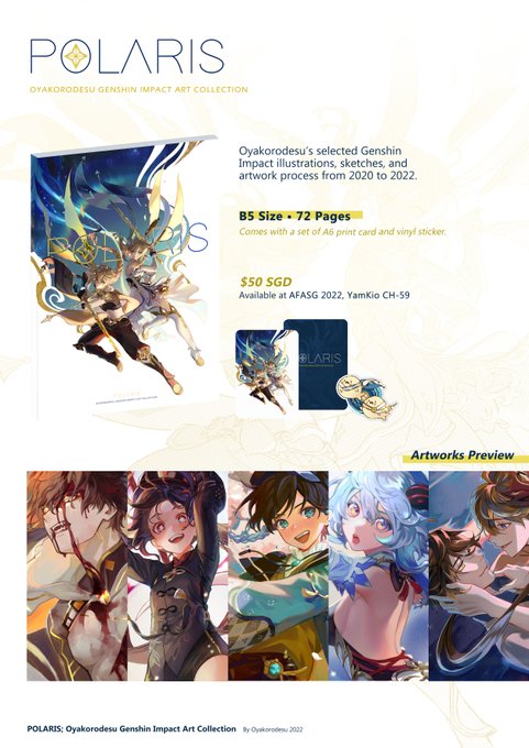 Here is my Genshin Art Book "Polaris" making its debut soon at AFASG! I'm really proud of this artbook, so please look forward to it! 😳💕