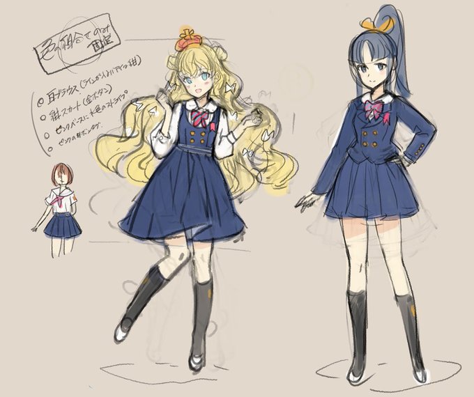 迷いすぎたのでもう色の組み合わせだけ固定してデザインはキャラごとに変えることにしたw(アイドル衣装方式) ちなみにキャラはまだ決まってないのでこの二人というわけではないです。 #英雄戦姫 #キャラデザラフ