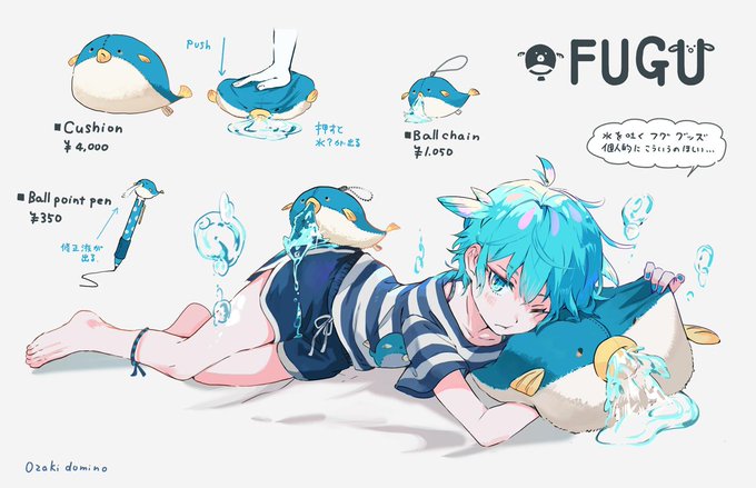 ショタとフグ。水を吐くフグのこういうグッズめちゃ欲しい・・。(素材とか構造は謎だけど) #水を吐くフグ