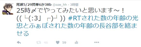 #RTされた数の年齢の光忠とふぁぼされた数の年齢の長谷部を絡ませる 46歳燭台切と59歳長谷部です~!