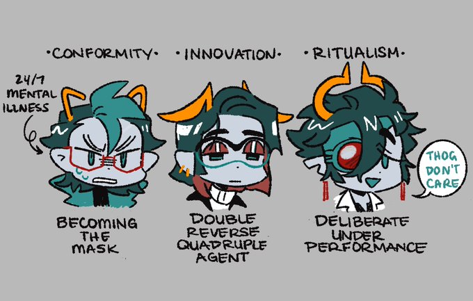 puts my teals under the microscope on their coping with living under a fucked up regime where they kill u for rejecting societal expectation ft. merton’s strain theory and tvtropes