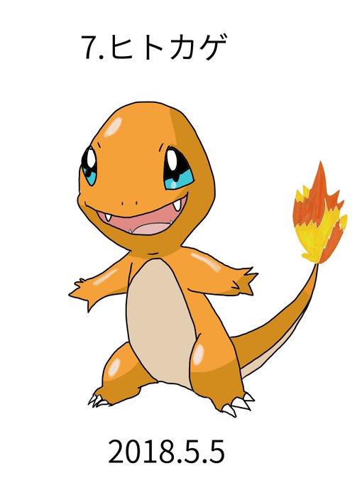 図鑑番号7番ヒトカゲ! 上手く色塗れた気がする(*´∀`*)