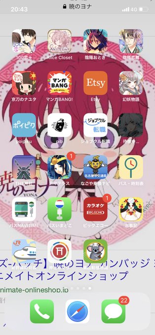 #これを見た人はホーム画面を強制アップ こんなん。アプリが多いからがぞうがみえない(^。^)4枚目は元のイラスト。私の好きな #暁のヨナ のヨナのグッズのイラスト!