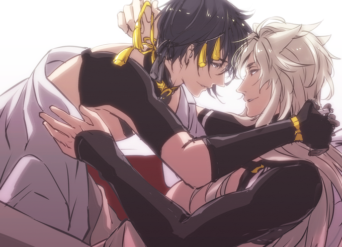 三日月と背くらべ。 「私の方が高いじゃろ?」(*うっすら捏造ととさま注意) 時間がなくてハーフドロぐらいですが、第一回開催おめでとうございます(´∀`) #小狐丸版深夜の60分一本勝負
