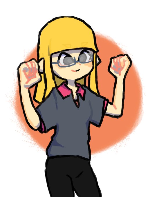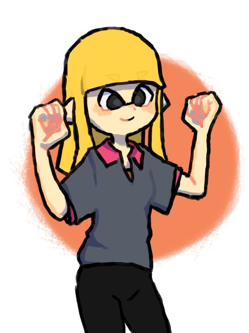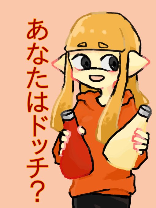 すけちゃーん!!描いたよ!! 手をつなごうとしてくれるすけちゃん(イカ)と両手でつなごうとする浦(イカ)の図