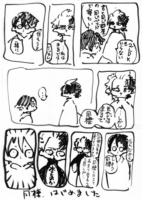 驚きの落書きクオリティだけどこういう感じで現パロ半官は同棲初めてほしいっていう漫画