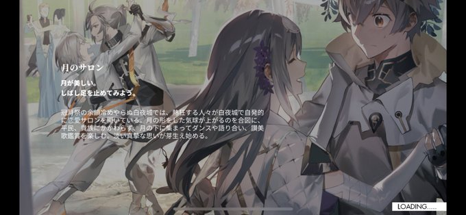 今回のイベント個人的に刺さりすぎてとてつもなく良いのだが…? ロード画面でも予告もなくいきなり顔面の暴力(美)に屈服することになってる 大量の推しを摂取できるなんてさいっこぅだね!!!! #白夜極光