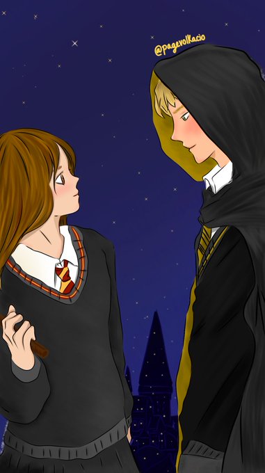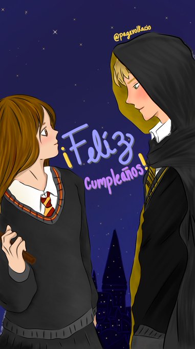 ¡Feliz cumpleaños a la reina de nuestros corazones! Sé que no soy la mejor dibujante pero quise hacer un pequeño dibujo de @soyvioletag y @Perxitaa como si fueran estudiantes de Hogwarts como regalo, espero les guste 🥺💖