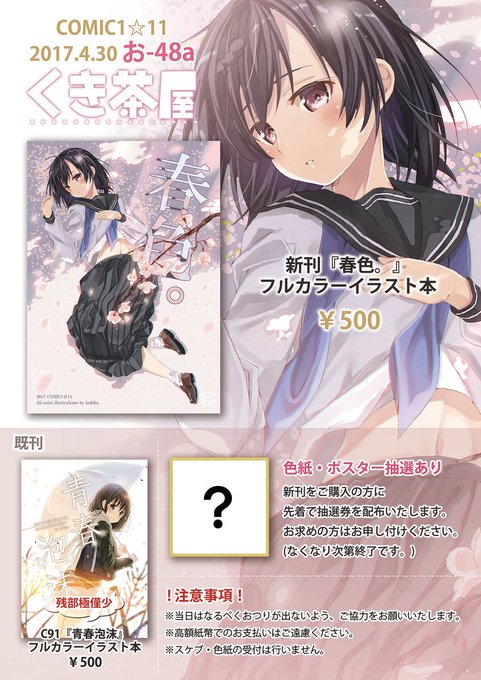 新刊『春色。』と極僅少ですがC91で頒布した『青春泡沫』も持って行きます!ゲットしたい方はお早めに。