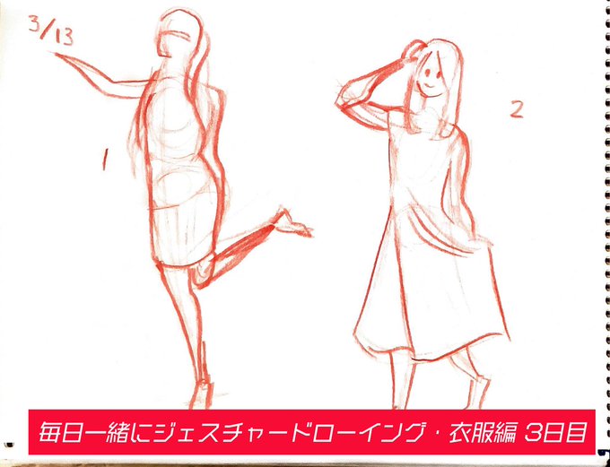 毎日一緒に #ジェスチャードローイング ・衣服編