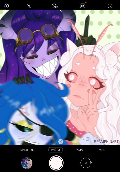 It was so fun to draw them! 💕 The purple one is my hellsona Malum, Daccota (pink) and Ophelia (blue) belong to my amazing friends. 😊